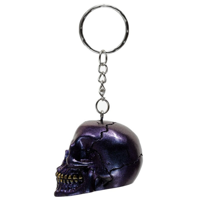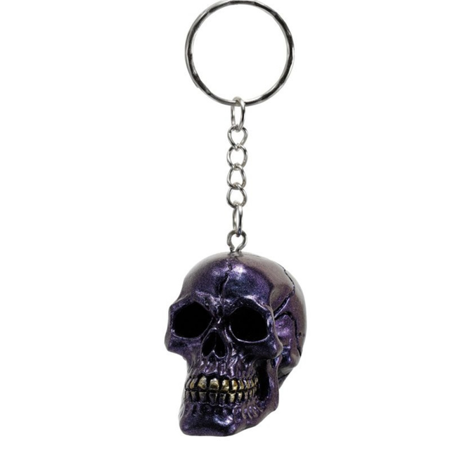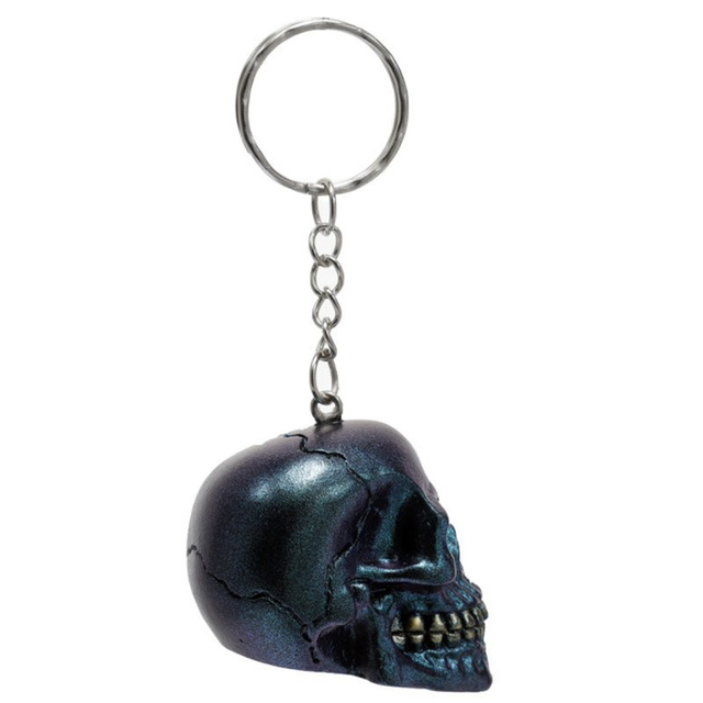 Metallinhohtoinen pääkallo avaimenperä. Hartsia,koko :4 x4cm. Valitse väri valikosta.