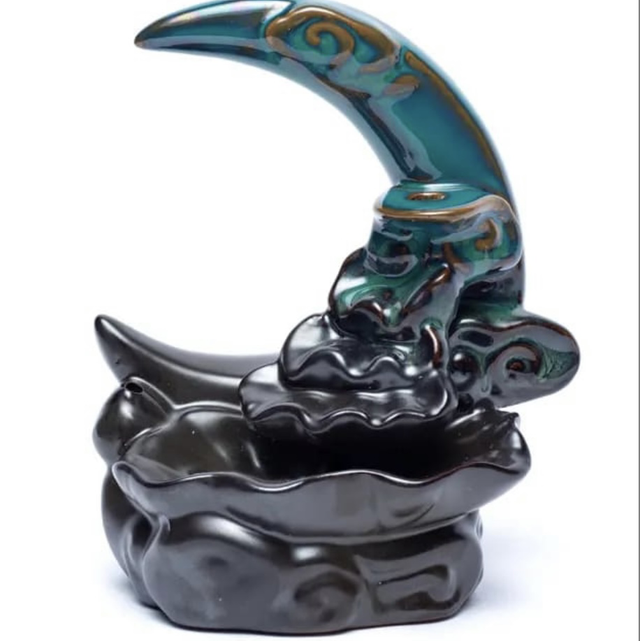 Keraaminen Kuu suitsukealusta Backflow-suitsukkeille. Käy myös tikkusuitsukkeelle. Koko: 10x 12 x 8cm.hox! Kuun väri voi poiketa kuvasta vähän.