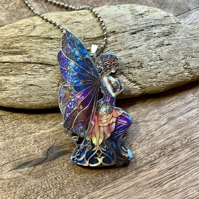 Akryyliä, keijun koko: lev.4cm ja pit.8cm. kokonaispituus ketjun kanssa: 30cm.