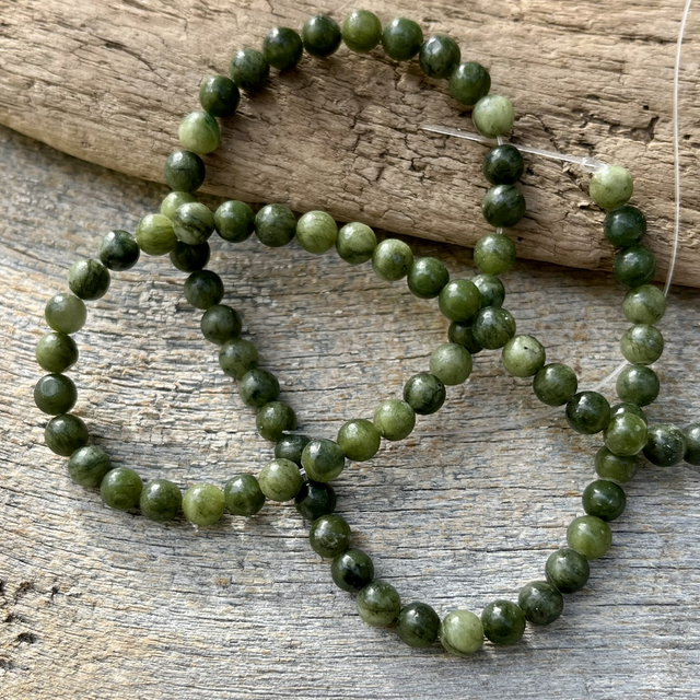Jade kivihelmet. Koko 4mm, pötkylässä 85-90kpl . Reiän koko 0,8cm. Askarteluun, rannekoruihin,unisieppareihin ym….