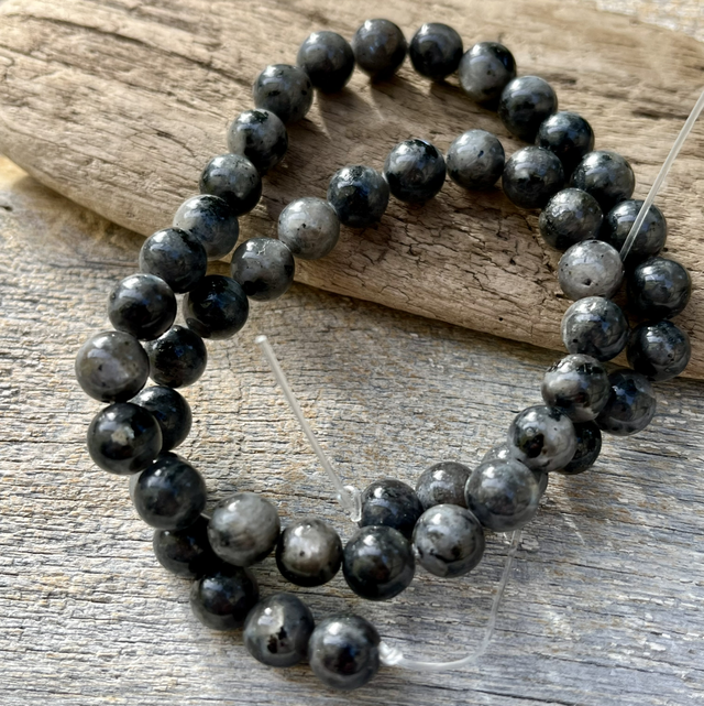 Upeat Larvikiitti kivihelmet. Koko 8mm, pötkylässä 45-48 kpl. Reiän koko 1mm. Askarteluun, rannekoruihin,unisieppareihin ym…