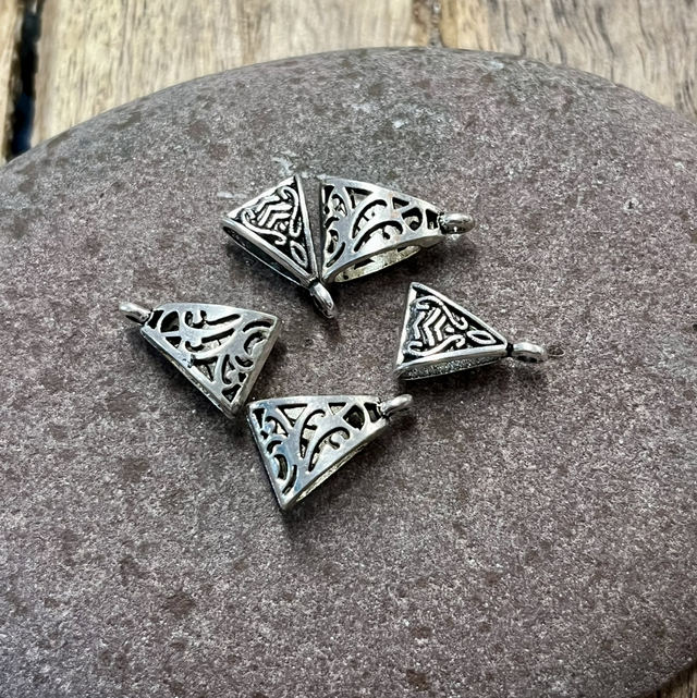 Tiibettiläistyylinen koruripustin,koko 1,5 x 1cm, reiän halk. 1,5mm, paketissa 5kpl. Nikkelitön korumetalli.