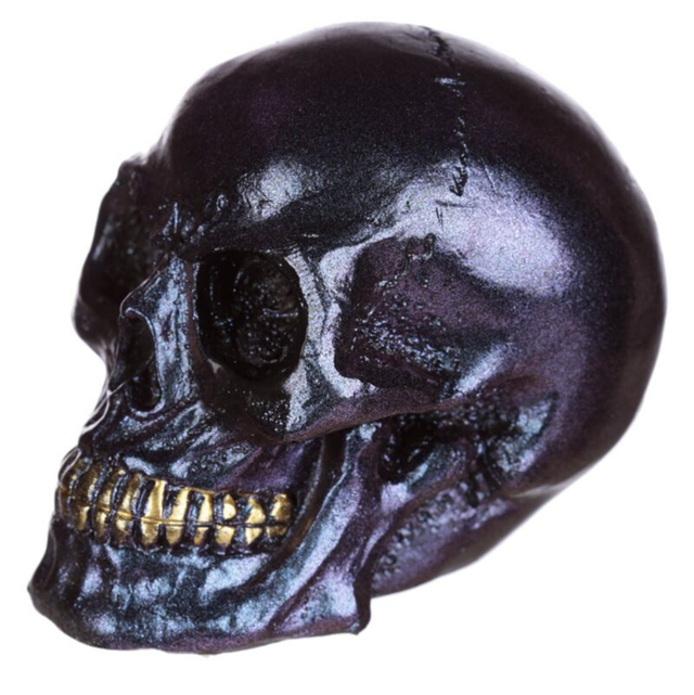 Upeat metallihohtoiset pääkallot. Hartsia, koko: 6,5 x 4,5cm. Valitse haluamasi väri valikosta.