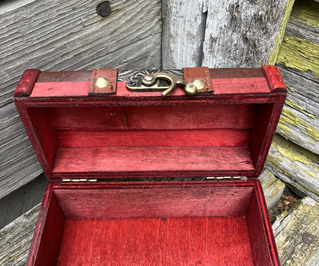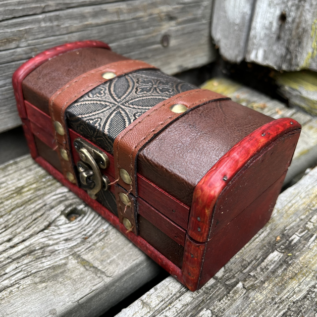 Upea pienempi nahka/puu arkku pienemmille aarteille. Koko: 15 x7,5 x 7,5cm.