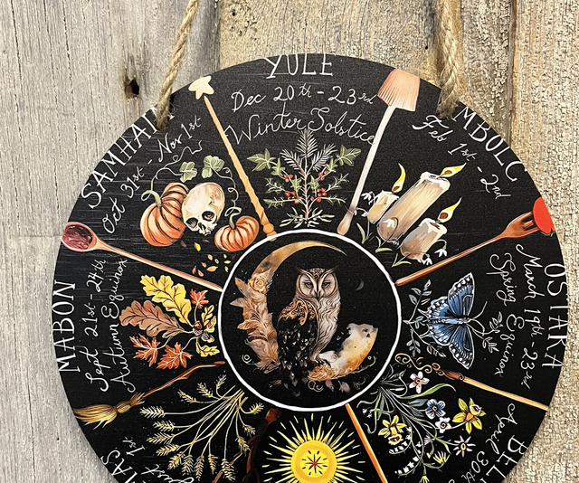 Upea puinen pakanakalenteri. Halk.20cm, juutti ripustusnauhat takana. Tästä kalenterista näet kaikki juhlapyhät.