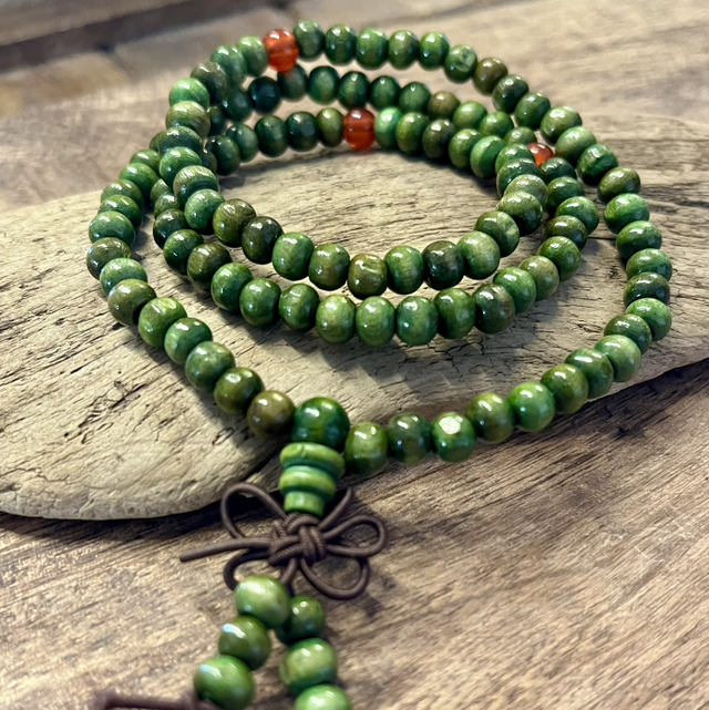 Rukousnauha puu. Joustava nauha, jonka voi myös kääriä ranteen ympärille.Pituus 52cm. Helmien halk.5mm.