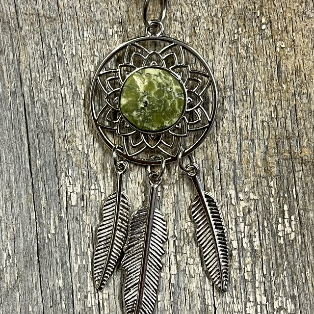Unisieppari riipus. Riipuksen koko: 7x 3cm, kiven halk. 1,2 cm.