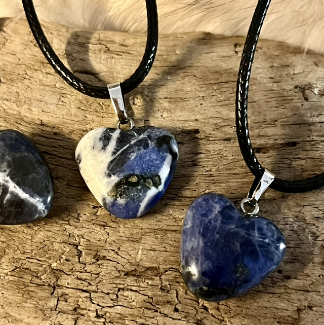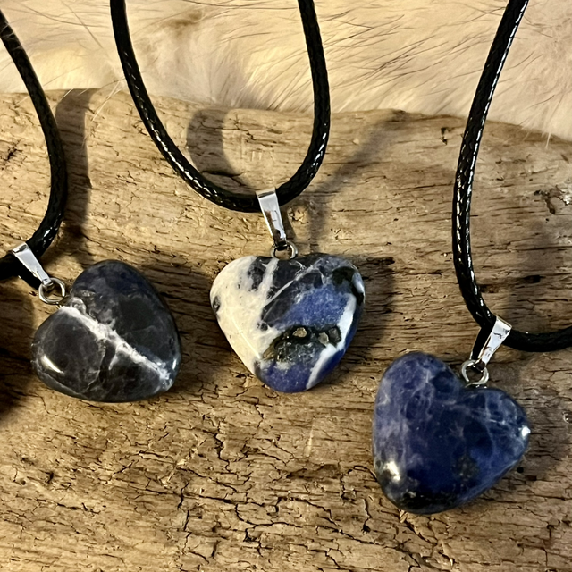 Ihana Sodaliitti Kivisydän riipus. Kiven koko n. 2cm. Ketju musta vahattu nyöri, pituus 60cm.Hox!! Kivien väri ja kuviot voivat poiketa kuvasta.