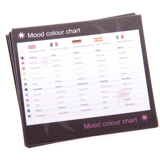 Säädettävä tunnesormus Yksisarvinen, nikkelitön korumetalli. Mukana tulee tunnekartan värit. Sormus vaihtaa väriä tunteen mukaan ( oikiasti perustuu kehon lämpötilaan 😊)