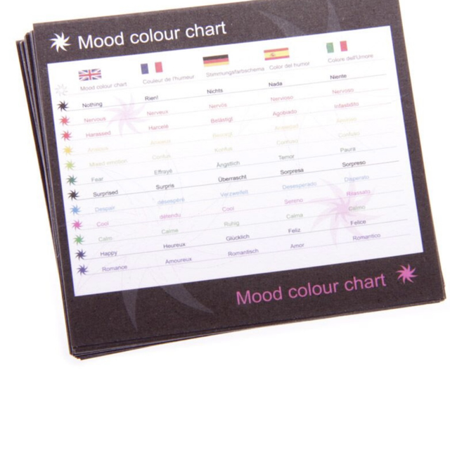 Säädettävä tunnesormus Yksisarvinen, nikkelitön korumetalli. Mukana tulee tunnekartan värit. Sormus vaihtaa väriä tunteen mukaan ( oikiasti perustuu kehon lämpötilaan 😊)