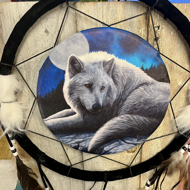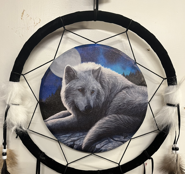 Ihana Unisieppari Susi. Susikuva painettu canvas- pohjalle. Koko: halk.33cm, pit.65cm.